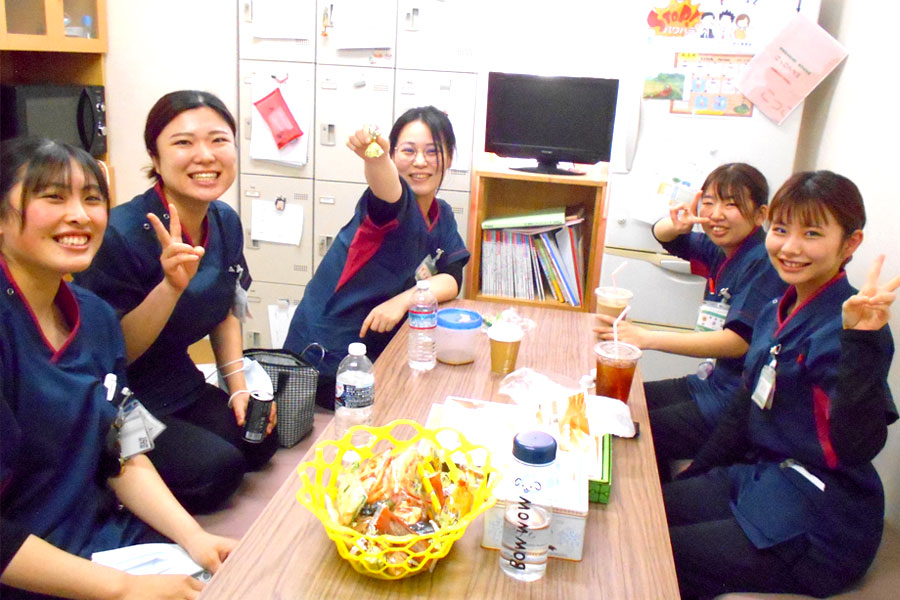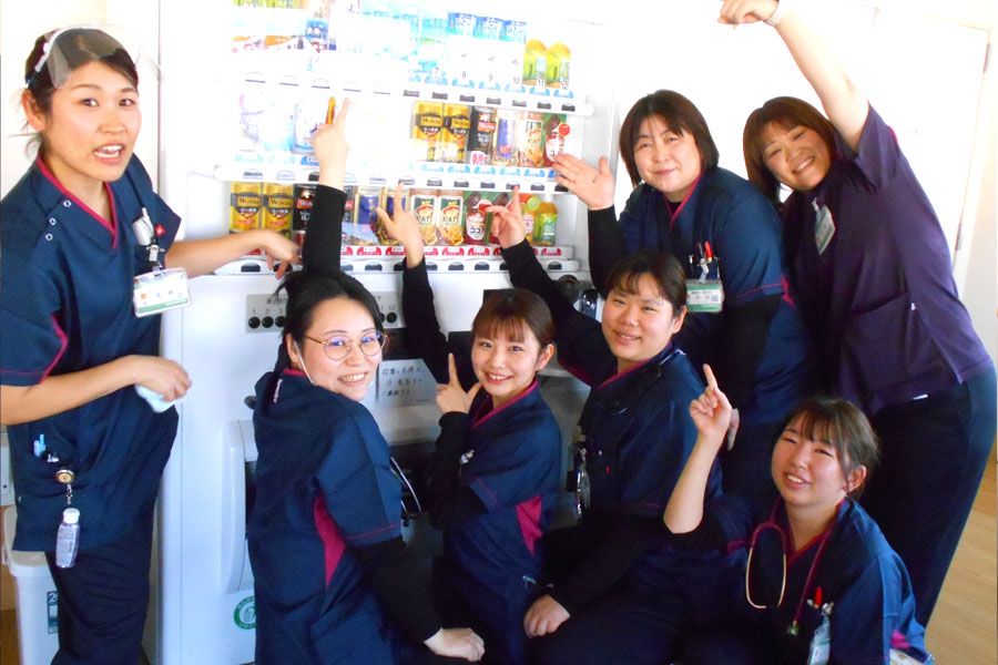 当手術室は13診療科あり、手術件数は年間 2000件を超え、うち約 400件は緊急手術を行っています。 医師・麻酔科医・看護師・メディカルスタッフと共に24時間・365日手術が出来る体制を取っています。 手術看護認定看護師・周術期管理チーム看護師・第2種滅菌技師、診療看護師も在籍し、周術期看護の質向上、また資格取得に向けて、スタッフー丸となり取り組んでいます。 手術中は緊張感を持ちながら業務に当たり、休憩時間は楽しく過ごしています。コミュニケーションを大切にし、チームワーク良好で楽しい職場です。 ローテーション研修後の配属スタッフや中途入職スタッフ、ママさんスタッフなども在籍し、その人にあった勤務体制を取っています。