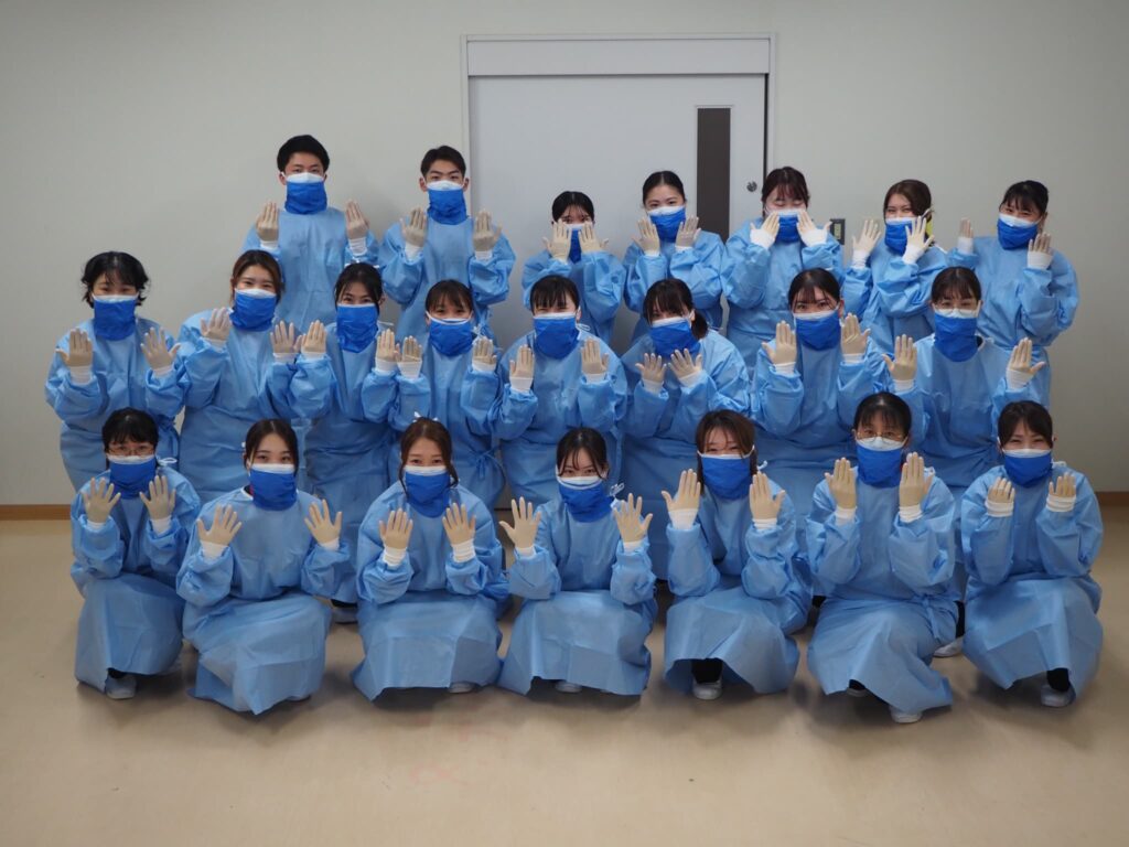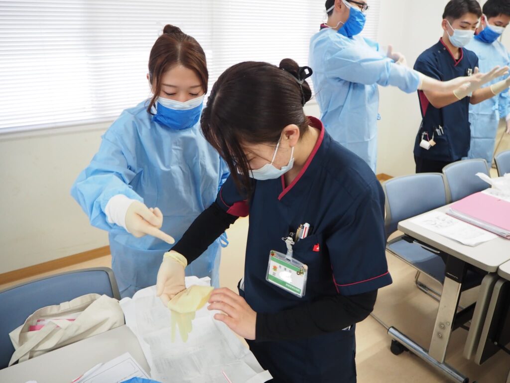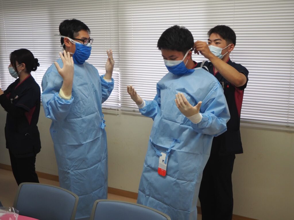 皆さん慣れない手つきで一生懸命ガウンテクニックを実践していました。