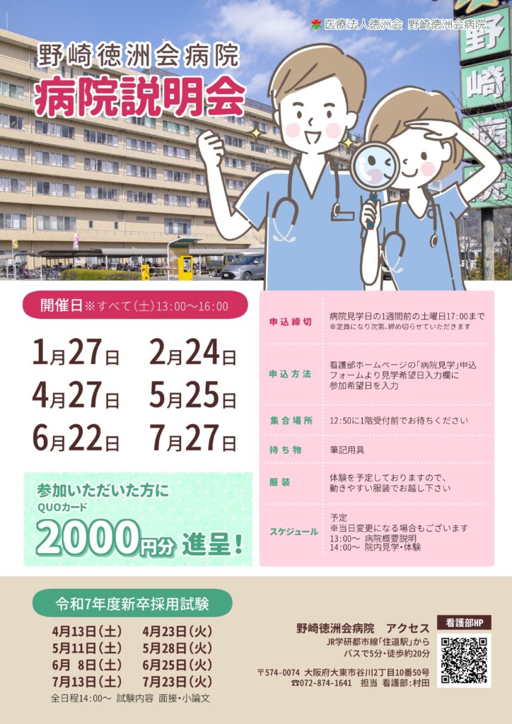 病院説明会・見学会を行っています(∩´∀`)∩ 2024.04.12 ニュース 野崎徳洲会病院をたくさん知ってもらえる機会です!少しでも当院が気になっている方はぜひぜひ参加してください!お待ちしております☆ 記事のタイトルとURLをコピーする 新人研修前の記事 新人看護職員研修次の記事