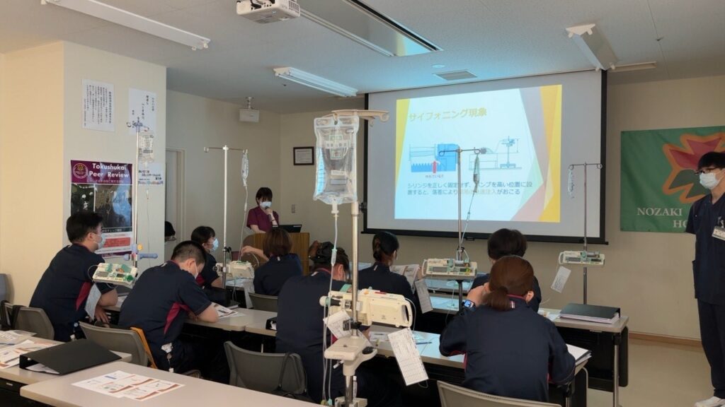 輸液ポンプ・シリンジポンプの使用方法を臨床工学科スタッフから講義を受けました。