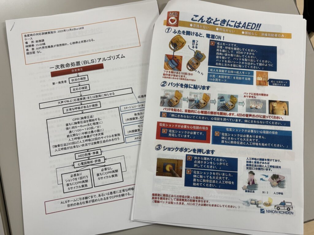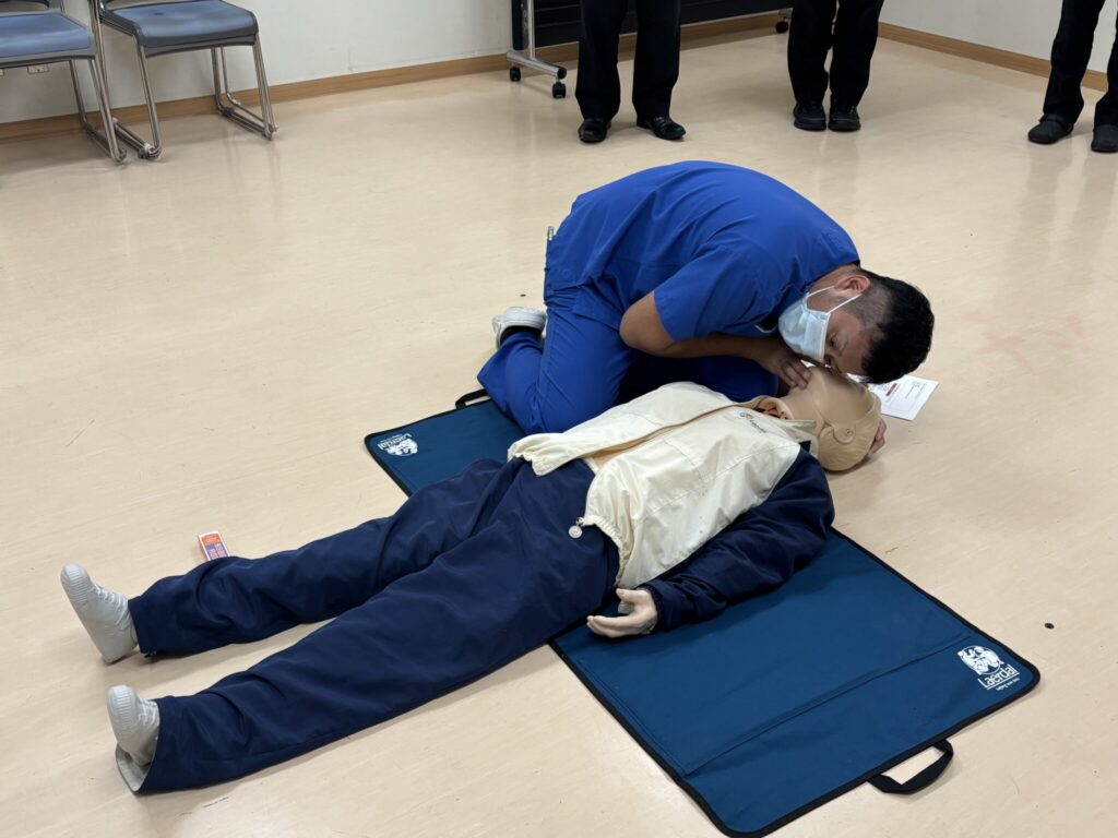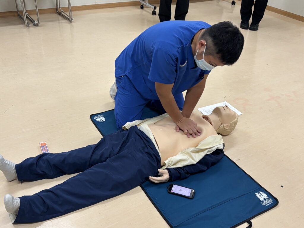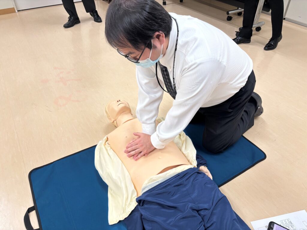 総務課の近くで人が倒れたことを想定しまず、動きを教えてもらいました。