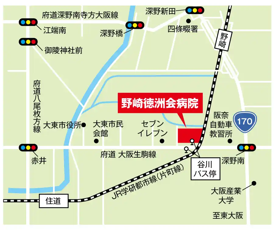 阪奈道路を大阪方面へ。外環状線経由で「深野南」を左折